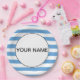Cooles, blau-weiß gestreiftes Muster und Namensvorlage. Klicken Sie auf Personalisieren und fügen Sie Ihren Namen hinzu.