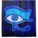 Duschvorhang mit Auge von Horus, das Symbol des Schutzes im alten Ägypten texturiert Design. Dieses Metalldesign zeichnet das Horus Eye in blauen Tönen auf verblassten Horus Eyes im Hintergrund aus.