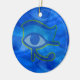 Keramik-Ornament mit Auge von Horus texturiert blau mit goldener Kontur abstraktes Design. Das Horusauge ist in blauen Tönen auf verblassten Horusaugen im Hintergrund zu sehen.