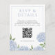 Blauer Hydrangea blüht UAWG und Details, w/QR-Code Begleitkarte
