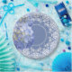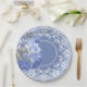 Blaue Hydrangeas u. weißer Spitze-Party-Hochzeits-Empfangs-Teller