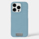 Eine zarte, blass blaue Telefonzelle, die wie Leder aussieht und Platz für Ihre Initialen auf einer metallischen Namensplatte aus Imitaten bietet. Alle Imitate und ein fabelhaftes Gehäuse. Nicht echtes Leder (aber Sie wussten das)