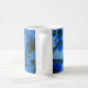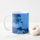 Eine delikate Kaffeetasse aus Keramik mit weichen, blauen Blumenmustern, die sich sanft um die Oberfläche schlängelt, wie eine Federbrise. Die Blume in den Farben Himmelblau bis Indigo vermitteln ein Gefühl von Ruhe und Eleganz. Die Tasse sitzt bequem in den Händen, ihre sanften Kurven und die glatte Glasur bieten eine warme Umarmung, während der Dampf aus dem reichen, aromatischen Kaffee im Inneren steigt. Es ist die perfekte Mischung aus Charme und Ruhe - wie zum Beispiel die Ruhe eines blühenden Gartens zu genießen. ☕️ 🌸 💙
