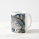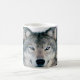 Dieses Produkt, das einen grauen Wolf mit glänzenden blauen Augen kennzeichnet, ist als Geschenk groß