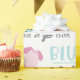 Stilvolle Geschenkpapier für Gender enthüllen Partys, in denen steht: "Blau oder Rosa, was denken Sie?"