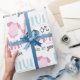 Blauer oder rosa Baby Gender Reveal Party Dusche Geschenkpapier
