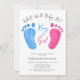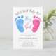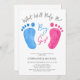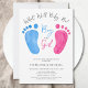 Diese niedlichen Gender Reveal Einladungen sind mit rosa und blauen Babyfüßen dekoriert. Sie sagen "Junge oder Mädchen, was wird das Baby sein?" in stilvoller Schriftzeichen. Einfach anpassbar. Original Wasserfarbe © Michele Davies.