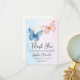 Party des Blauen oder rosa Geschlechts. Babyparty. Diese niedliche Gender Reveal Baby Dusche Danke Karten Design verfügt über eine Aquarellschmetterlinge.