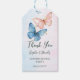 Blue oder Pink Gender Reveal Baby Shower Party Geschenktasten. Diese niedliche Junge oder Mädchen Gender Reveal Babydusche Fevor Tags Design verfügt über eine Aquarellschmetterlinge.