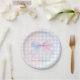 Blauer oder rosa Gingham Bow Gender Reveal Baby Sh Pappteller