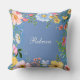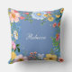 Hübsches, blaues Kissen - erhältlich in verschiedenen Größen und Stoffen, die Sie mit Ihrem Namen personalisieren können, mit einem hübschen, farbenfrohen Blumenrahmen an den Kanten.