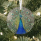 Dekorative Schmuckstücke für jedes Jahr, die das Foto eines wunderschönen, blauen Pfaues mit farbenfroher Federkuppe zeigen. Auf beiden Seiten gedrucktes Bild. Wählen Sie Ihren Schmuckstil aus.