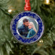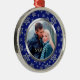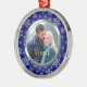 Dieser Ferienschmuck zeigt Ihr eigenes Foto in einem hübschen Rahmen von Schneeflocken aus Silber Glitzer auf einem königsblauen Hintergrund. Der Rahmen des Schneeflockenmusters hat ein Chromfutter im Inneren von Imitaten. Ein elegantes und festliches Sake-Geschenk für Neuvermählte oder ein Paar. *Bitte beachten Sie, dass das Bild gedruckt ist und keinen Glitzer enthält.*
