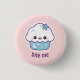 Super niedlicher blauer kleiner Kuchen mit glücklichem Gesicht. Sie können den Text behalten, "mich zu beißen" oder es durch Ihr eigenes Sprichwort zu ersetzen.