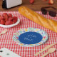 Blauer Regenwald mit blauem Rosa bei Evergreen Wed Pappteller