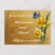 Ein hübsches Design mit einem blauen Schmetterling, der auf dem Narzissenkopf alarmiert und im Hintergrund dezente Details in der Narzisse zeigt. Ihre Daten können einfach hinzugefügt werden und diese werden mit einer subtilen diffusen Daffodil-Szene angezeigt. Ideal für Frühjahrshochzeiten, Schweißverbindungen und Liebhaber dieser wunderschönen Blume, passende Hochzeitseinladungen, Dankkarten etc. vorhanden.
