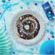 Blauer SchokoladenDonut mit Sprinklen-Papierplatte Pappteller