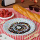SchokoladenDonut mit Sprinklen zum Mittag- oder Abendessen Party Papierplatte