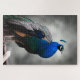Blaues, schwarzes, gelbes, grünes und weißes Pfau-Foto 1014 bessert erwachsenes Puzzlen aus und verdoppelt als einzigartige Wandkunst für das Wohnzimmer.