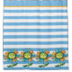 Ein blau gestreifter Sonnenblumenduschvorhang mit gelben Fassaden und Sonnenblumen
