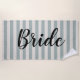 Einfach stylisches, blau und Elfenbeingestreiftes Strandtuch, personalisiert mit großen Bride-Schriftzeichen, oder anpassen Sie es mit Ihrem Namen oder anderen Text. Verwenden Sie die Designtools, um die Schriftartes und Farben des Textes zu ändern oder um Ihre eigenen Fotos zu erstellen, um ein personalisiertes Strandtuch für Ihren Junggeselinnen-Abschied, Flitterwochen oder ein einzigartiges Hochzeitsgeschenk zu erstellen.