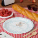Blauer Küken Blumenmuster mit niedlichem blauen Teddy Bären Baby Boy Duschpapier Teller.