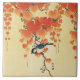 Blauer Tit Bird, Paulownia Zweig, Roter Herbst Blä Fliese