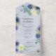 Blauer und Elfenbeinblauer Rose mit QR-Code All In One Einladung