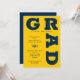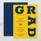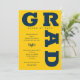 GRAD in fett blauen goldgelben Buchstaben Kurven um die Kanten dieser gelben Hintergrund Graduation Party Einladungen. ÄNDERN SIE DIE FARBEN zu allem! **TIPP: Klicken Sie auf den Link CUSTOMIZE weiter, klicken Sie auf das Feld COLOR rechts oben; geben Sie Ihren Farbhex-Code in das Feld #xxxxxx ein, um Ihren Schulfarben zu entsprechen. SIEHE GANZE SAMMLUNG von vorgefertigten Farbkombinationen, Papier-Teller, Servietten, Gunst-Boxen und Graduierungsparty Einladungen in unserem Shop.