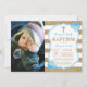 Blauer und goldener Glitzer Taufe Einladung mit individuellem Foto. Junge Taufe. Erstkommunion. Feiern. Kindesentführung. Gold und weiße Streifen. Blauer Blume Für weitere Anpassungen klicken Sie bitte auf die Schaltfläche "Anpassen" und verwenden Sie unser Designwerkzeug, um diese Vorlage zu ändern.