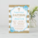 Blauer und goldener Glitzer Taufe Einladung. Junge Taufe. Erstkommunion. Feiern. Kindesentführung. Gold und weiße Streifen. Blauer Blume Für weitere Anpassungen klicken Sie bitte auf die Schaltfläche "Anpassen" und verwenden Sie unser Designwerkzeug, um diese Vorlage zu ändern.