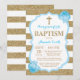 Blauer und goldener Glitzer Taufe Einladung