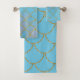 Blauer und goldener Iridescent Shimmer Meerjungfra Badhandtuch Set