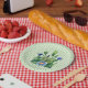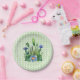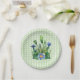 Dieses Design bietet eine Mischung aus grafischen Formen und farbenfrohen Blume. Der Hintergrund ist ein Muster grüner Blätter. Im Zentrum des Designs gibt es eine Gruppe von blauen und orangen Blume. Dieses generische Design ist perfekt für Ostern, Muttertag, Geburtstage, Brautpartys und so viele festliche Anlässe.