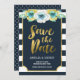 Dieses stilvolle Save the Date Invitation verfügt über eine goldene Imitat-Grenze, blau-weiße Streifen und schöne Aquarellblumen. Zur Einladung gehört auch eine gemusterte Rückseite. Karo andere passende Artikel in der Blue & White Kollektion, Imitate Gold, Blumenhochzeit / Bridal Collection in meinem Shop http://www.zazzle.com/collections/blue_white_faux_gold_floral_wedding_bridal-119799004172959353?rf=238364477188679314 Personalisieren Sie diese Einladung durch Ersetzen des Platzhaltertextes in der Vorlage. Für weitere Optionen, wie zum Beispiel den Schriftart zu ändern und seine Größe, klicken Sie auf die Schaltfläche "Anpassen". *Bitte beachten Sie, dass das Zazzle-Wasserzeichen in der Zoomvorschau NICHT auf dem gedruckten Endprodukt © Rosewood and Citrus erscheint