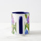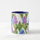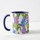 Unsere Blue & Lila Hyacinth Floral Tasse bietet botanische Aquarellbilder von wunderschönen Frühlingsblüten mit rosa und lila Hyazinthen.