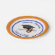Blauer und orangefarbener Graduierungsdeckel und T Pappteller