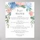 Romantische Blumenkarte mit einer Garage aus staubblauen und rosa Blume und Grün.