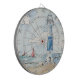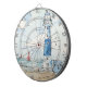 Illustrierte Küstenszene mit blauem und weißem Leuchtturm.
