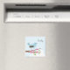 Blauer Vogel auf einem rosa blühenden Baumzweig. Niedlicher Kühlschrankmagnet, um mit eigenem Namen oder für ein Geschenk zu personalisieren.