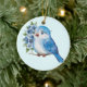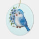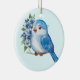 Blauer Vogel mit Blume Keramik Ornament