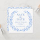 Erleben Sie das Wesen der Eleganz und des rustikalen Volksmeistes mit dieser botanischen Einladung zum Foto rett-the-date. Das elegante Boho-Design wird durch einen wunderschönen blauen Blumenkranz ergänzt, der den perfekten Ton für Ihre anstehende Feier bildet.