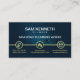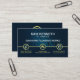 Eine einfache blaue Wassertropfenabdeckung wird durch einen goldenen Streifen aus Imitaten in der Nähe der Kartenbasis verstärkt. Der Streifen enthält 3 spezielle Goldknöpfe, die Ihre Kartendetails enthalten. Telefonkontakte sind auf dem während die Adresse in der Mitte ist. Am rechten Ende sind die E-Mail-Kontakte. An der Spitze liegt Ihr Prestigename, Jobtitel mit dem Firmennamen direkt darunter.