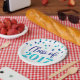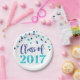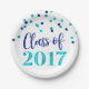 Kundengerechte Abschluss-Partyklasse von 2017 Teller im blauen Watercolor Confettimuster und in der eleganten Hand beschriftete Arttext.