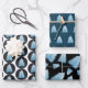 Blauer Weihnachtsbaum auf schwarz und blau Geschenkpapier Set