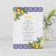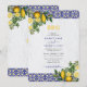 Ein modernes monogramm mediterranes Fliesen und Zitronen Hochzeitsdesign mit weißem, mediterranem Waschbecken. Ein mediterranes Ziel themed Hochzeitsdesign, das Aquarellbilder von blauen, weißen und gelben Kacheln und Zitronen verwendet, um ein elegantes Hochzeitsdesign im Sommer zu schaffen. Ein charmantes Ziel spanischer, griechischer, italienischer oder portugiesischer Sommer-Design mit klassischer Schrift Typografie. Eine elegante blaue, weiße und gelbe mediterrane Küste oder Landschaft themed Hochzeit einladen Design mit modernen Elementen. Es stehen auch passende Hochzeitsstilleriedateien und andere Hochzeitsformate zur Verfügung.