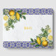 Ein modernes monogramm mediterranes Fliesen und Zitronen Hochzeitsdesign mit weißem, mediterranem Waschbecken. Ein mediterranes Ziel themed Hochzeitsdesign, das Aquarellbilder von blauen, weißen und gelben Kacheln und Zitronen verwendet, um ein elegantes Hochzeitsdesign im Sommer zu schaffen. Ein charmantes Ziel spanischer, griechischer, italienischer oder portugiesischer Sommer-Design mit klassischer Schrift Typografie. Ein elegantes blaues, weißes und gelbes, mediterranes Küsten- oder Landschaftsdesign, das auf Hochzeitsgärten basiert und moderne Elemente aufweist. Auch die passenden Hochzeitseinladungen und andere Schreibwaren sind verfügbar.