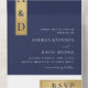 Blauer weißer Goldfarbenblock Monogramm Hochzeit All In One Einladung