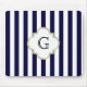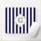 Blauer weißer Streifen, weißes Monogramm-Etikett Mousepad
