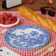 Das Aussehen der klassischen, Vintagen Blauen Willow Keramik mit einer einzigartigen, modernen Drehung! Ein Knacken - Der Hintergrund des Aussehens verleiht einen Vintagen Effekt. Meine originelle, handgemalte orientalisch-aussehende Inselszene umfasst stilisierte Bäume, Felsen und ein tempelförmiges Gebäude mit blauen und weißen blühenden Hasen, die auf den Rasen springen. Ideal für Kaninchen oder Tierliebhaber oder für alle, die blauen und weißen Töpferwaren und Dekoration Lieben. Whimsical, einzigartig, Original-Kunstwerk & Design von Tuzi Williams.